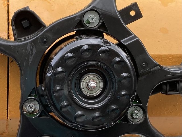 C-4 更換風扇馬達 : 這時候,右邊舊的引擎散熱風扇馬達已經卸下,可以把左邊新的裝