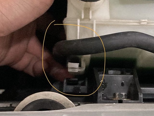 B-2 : 拆開副水箱,副水箱卡榫如下圖,在副駕駛側靠車頭的角落,按下卡榫直接往上拉