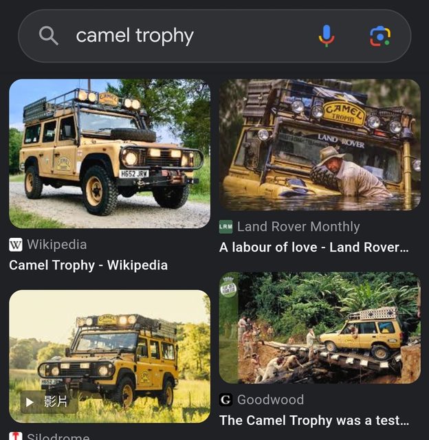 雖然沒限定什麼車,但基本上那個年代也只有生產各式農用車款Defender、後來有民用車
