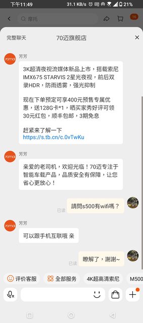 標題Re: [情報] 70邁S500流媒體699RMB起