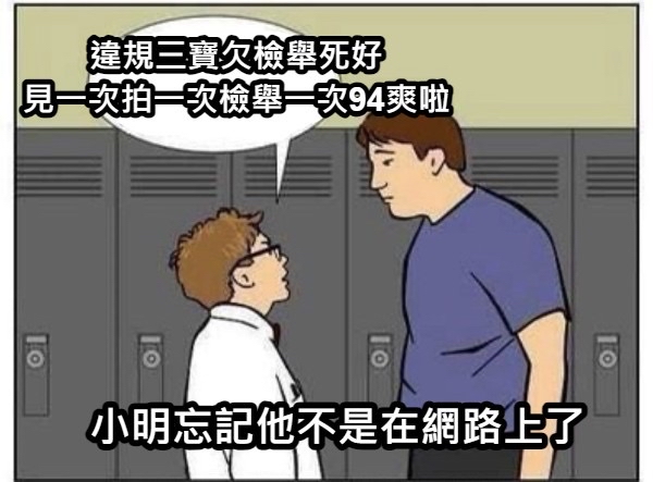 → EKman : 違規仔就是網路上很狠,現實裡被鏡頭拍到就跟狗一樣 10/06 13:06