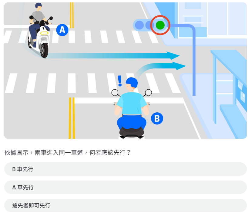 → FSWIN1278 : 正確答案是3,你說我不懂交通規則?不,那是你不懂台灣 10/09 20:43