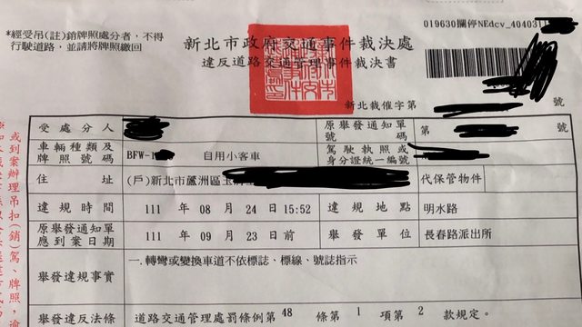 推 v2ssili : 罰單標號裁決書上面一定要有 就是被你碼掉的"原舉 10/15 19:32