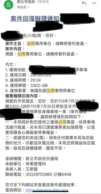 推 antennaboy : 之前檢舉過大潤發殘障車位公司工程車停,警察局交通 10/14 20:53
