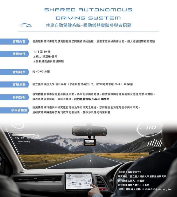 標題[問卷] 共享自動駕駛系統-眼動儀器實驗參與者