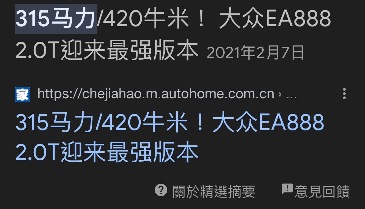 → dansy: 我都貼給你了 探岳330TSI 186匹馬力(136KW) 05/12 19:51