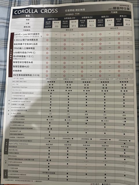 車輛廠牌/年份/型號:Toyota Corolla Cross 2024年式