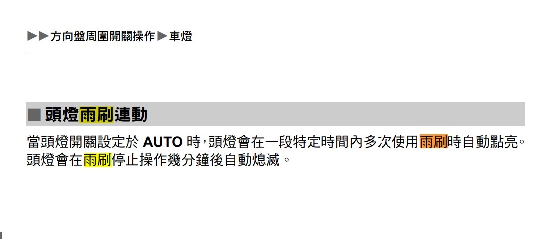 → cuteneo: 另外雨天搭AUTO的解法也很簡單 自動雨刷有刷就連動開燈 06/06 22:38