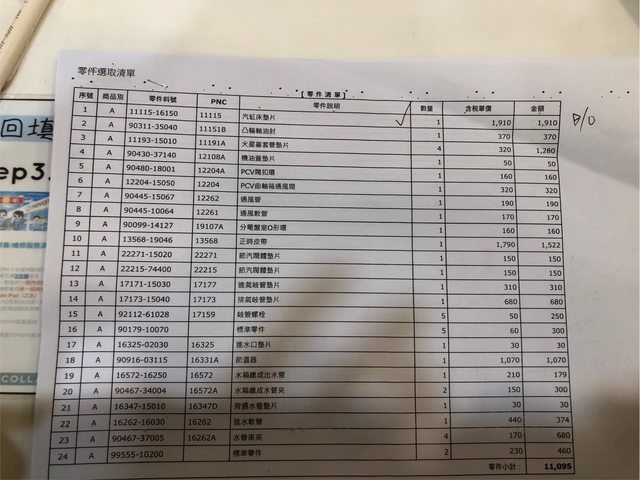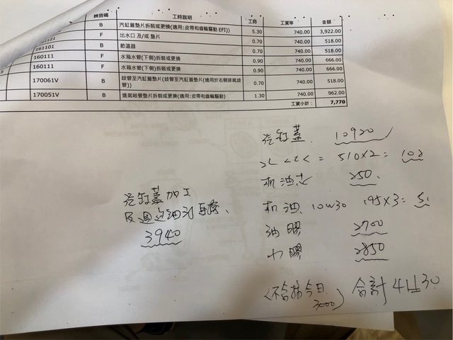 工資7-8 K就不貴,汽缸蓋平面研磨1W1,全部的原廠材料加總報價1w1也不貴。