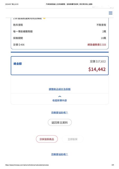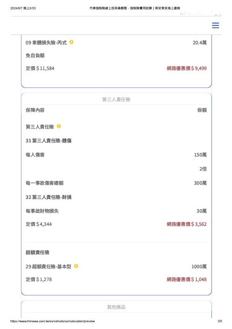 (話說保險頁面的車款有89.8萬跟95.9萬,我這台車查原價是92.9萬