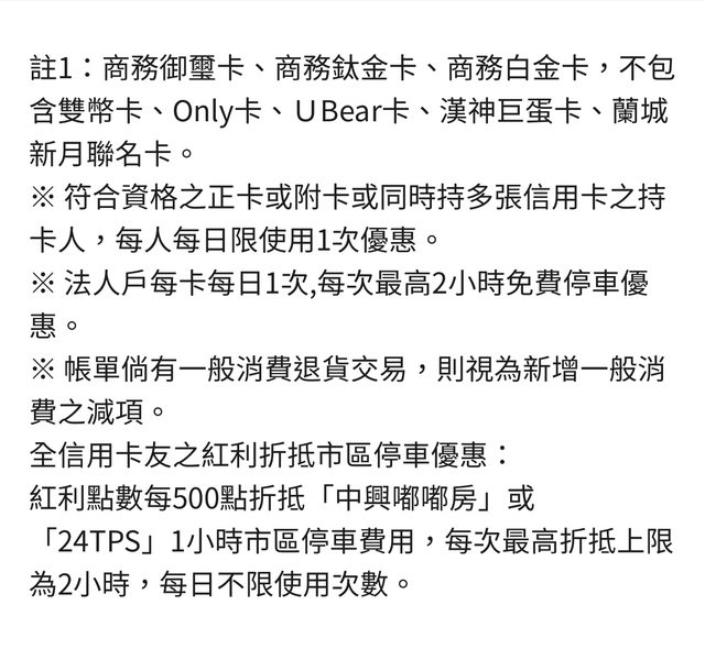 噓 monkey6 : 本來就沒寫這張卡有市區停車 用卡前做一下功課 05/22 14:38