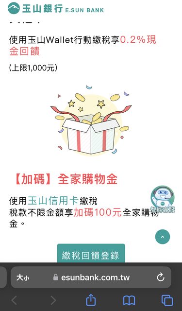 標題[問題] 玉山繳稅回饋加碼全家購物金