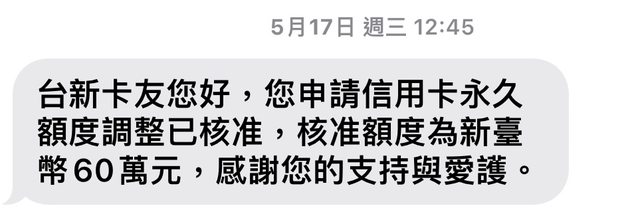 此次調額最開心的還是台新,終於調動了,但第一次申請時也是被打槍,後來因為賓士卡
