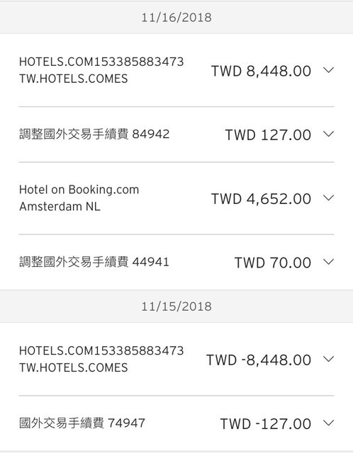: 估狗了「2018 訂房刷退」後得知花旗master會退手續費,visa不會退手續費