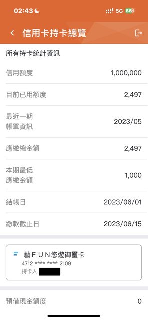 台企銀直接封頂1M蠻意外的