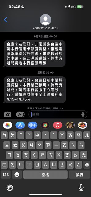 112/06/08 收到簡訊核准,登網銀看0.85M