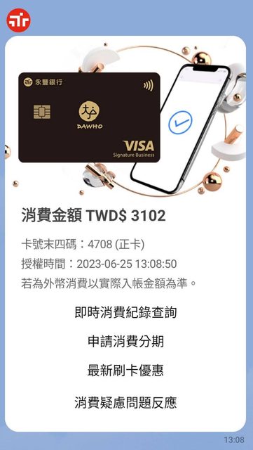→ satsukii : 以沒被刷過,是永豐風控(?)直接打電話給我確認是否是 06/26 23:23