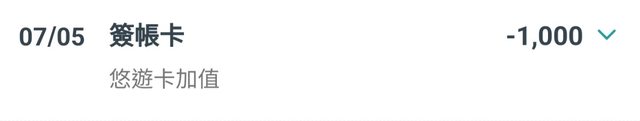→ temu2015 : 那是再上一次加值吧,簽帳卡哪有當日扣款的 07/05 17:32