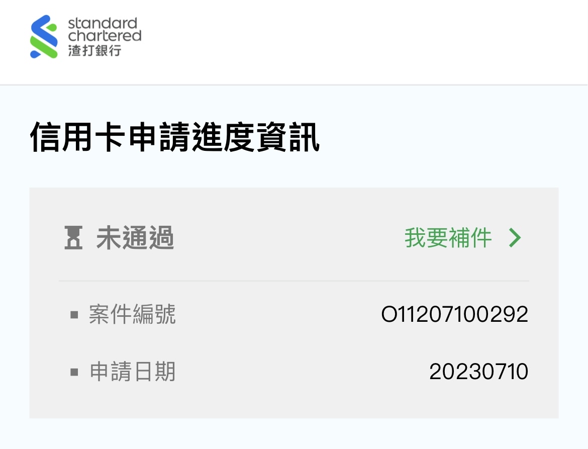 推 pulin0823 : 前天早上送出渣打 昨天補件上傳財力證明 今天早上接 07/12 14:12