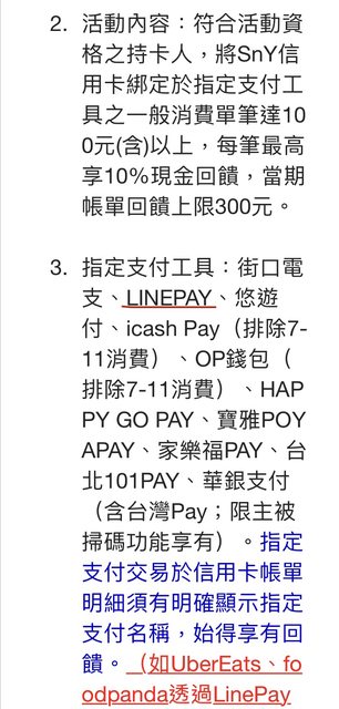 推 repast : 街口支付綁華南sny滿百一定有10%,拿好幾期回饋了 07/19 15:56