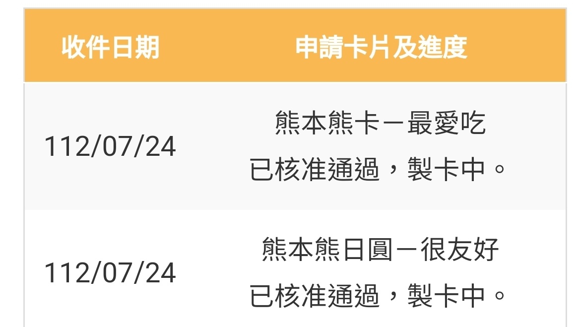 推 hank726 : 前天申請秒核 剛才查詢進度卡片近期寄送 07/26 14:12