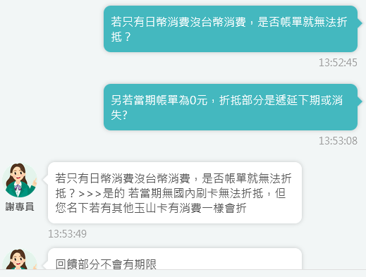 → Kazamatsuri : 可以抵帳單,尤其玉山目前帳單應該都是全卡合計沒 07/25 14:42