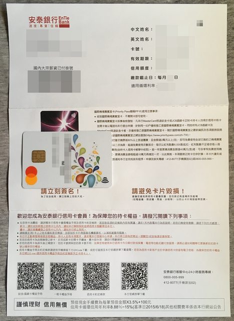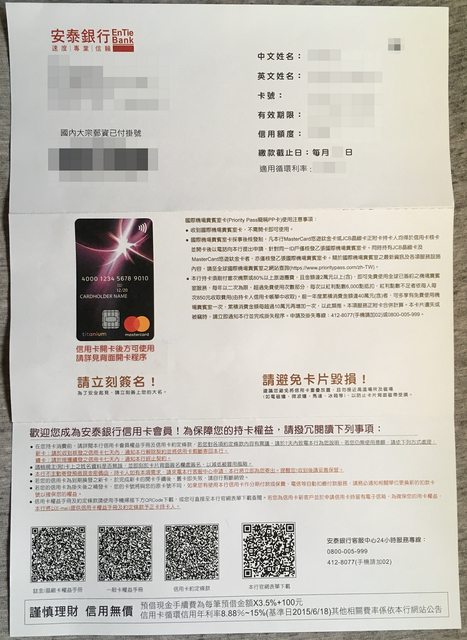 【安泰銀行線上申辦信用卡】申辦確認通知函