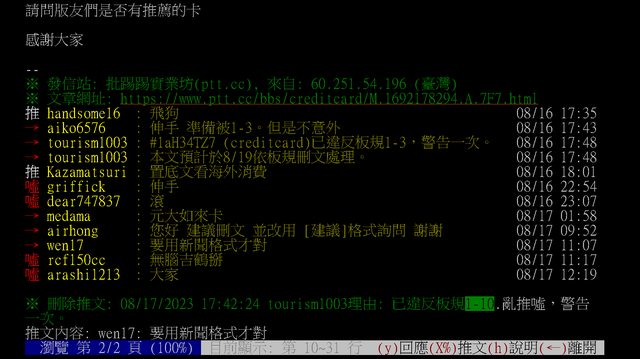 → wen17 : 我只想說既然這裡是creditcard板 08/21 07:02