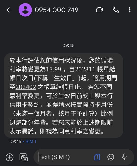 → alex1973 : 有些國銀的信用卡業務簡訊還真的是平台發送, 多家銀 08/26 21:02