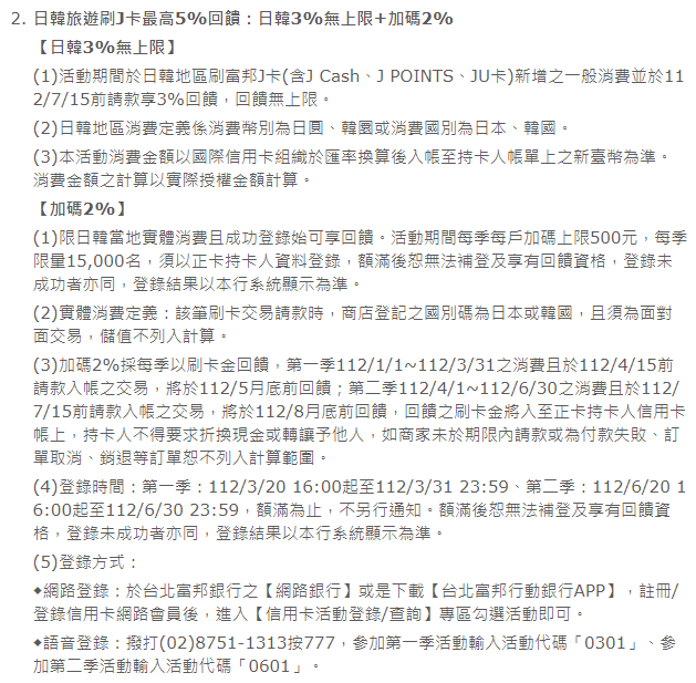 wattswatts : 這個登錄日韓5%與富邦暢遊樂登錄享5%回饋,能一起 08/31 23:48