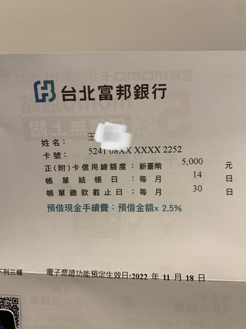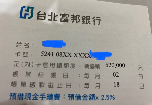 推 lazyboy571 : 當初辦卡 信用小白 剛工作三個月 月薪五萬 富邦核 09/28 08:34