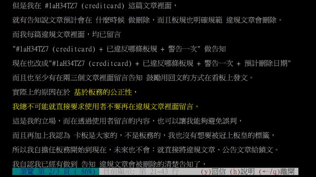 #1az4GrW3 (creditcard) 已經有表明立場:『1. 對於人身攻擊從嚴』