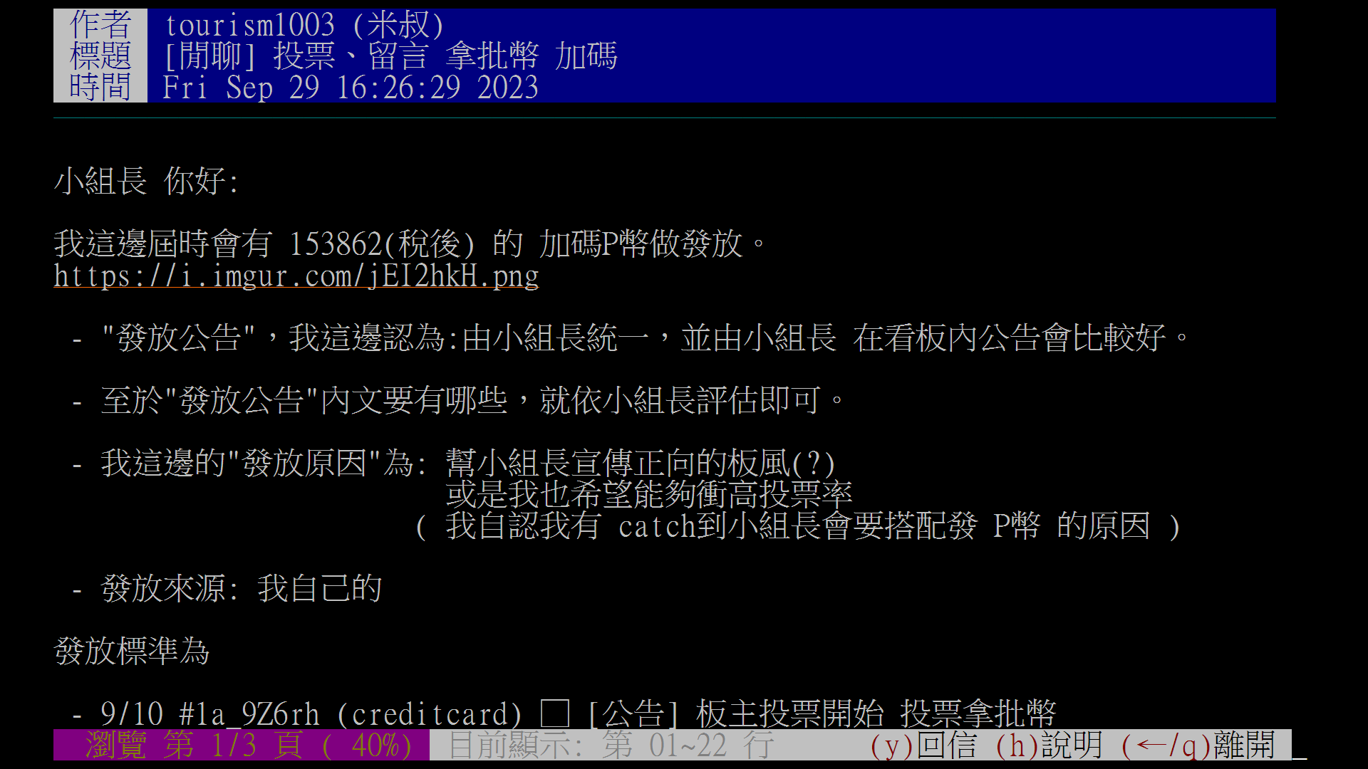 → tourism1003 : 我這邊也會有P幣欲提供給小組長做加碼使用,但被小 10/11 13:46