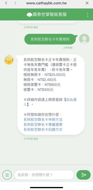 → pooty : 有幾千萬的國泰會給你世界卡免年費,但這張還是要繳 10/16 19:52