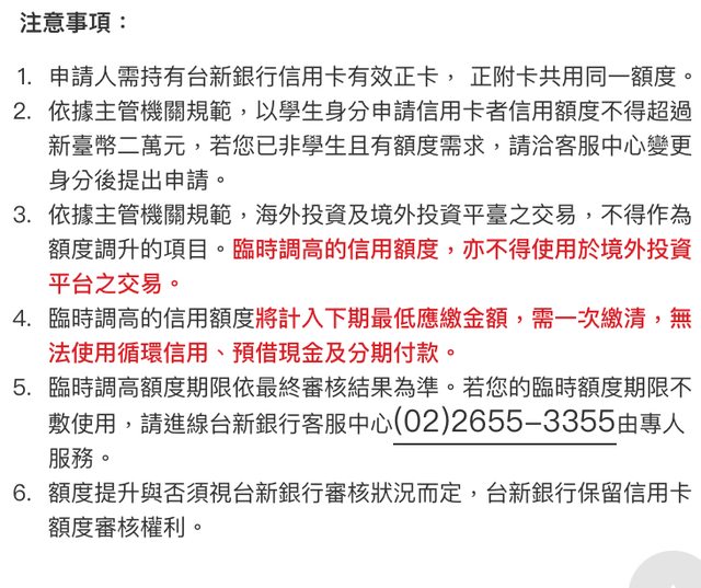 → Sheng98 : 要就調永久額度, 不是臨時額度 10/31 19:18