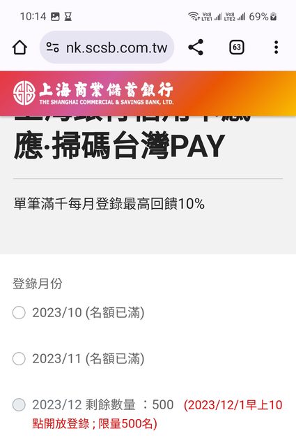 : 活動期間內以上海銀行信用卡綁定台灣行動支付APP結帳,每月至指定登錄頁面