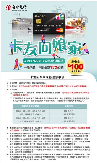 : (分眾)台中商銀樂享15%,100*2月