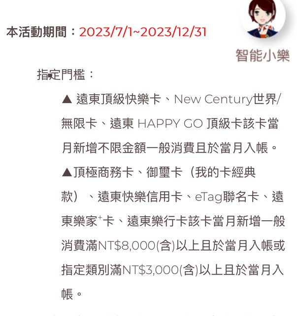 → m5092626 : 遠東的卡都好爛 而且要刷才免年費 一堆銀行卡比它好12/22 15:45