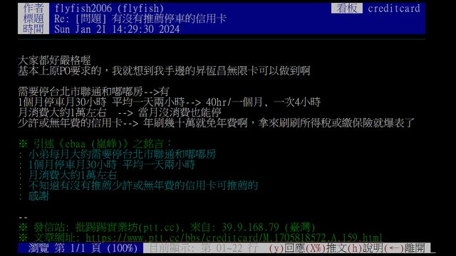 : ※ 文章網址: https://ptt-site.org.tw/creditcard/M.1705818572.A.159