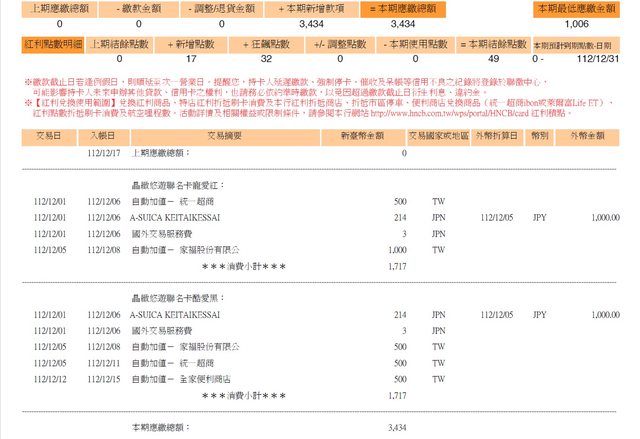 這個帳單可以看到只有刷數位西瓜卡的428元送的17點點數(428/25=17.12)