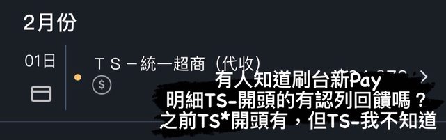 推 narcimeow : TS就台新pay,主要是你那筆是代收所以沒回饋 02/07 06:26