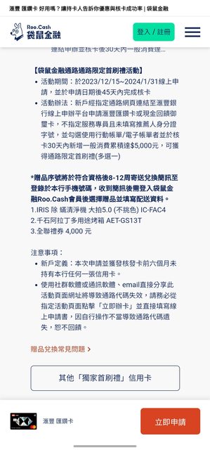→ w71023 : 簡單說 01/25 申請 45 天內核卡 30 天內達標 照規則 02/26 01:38