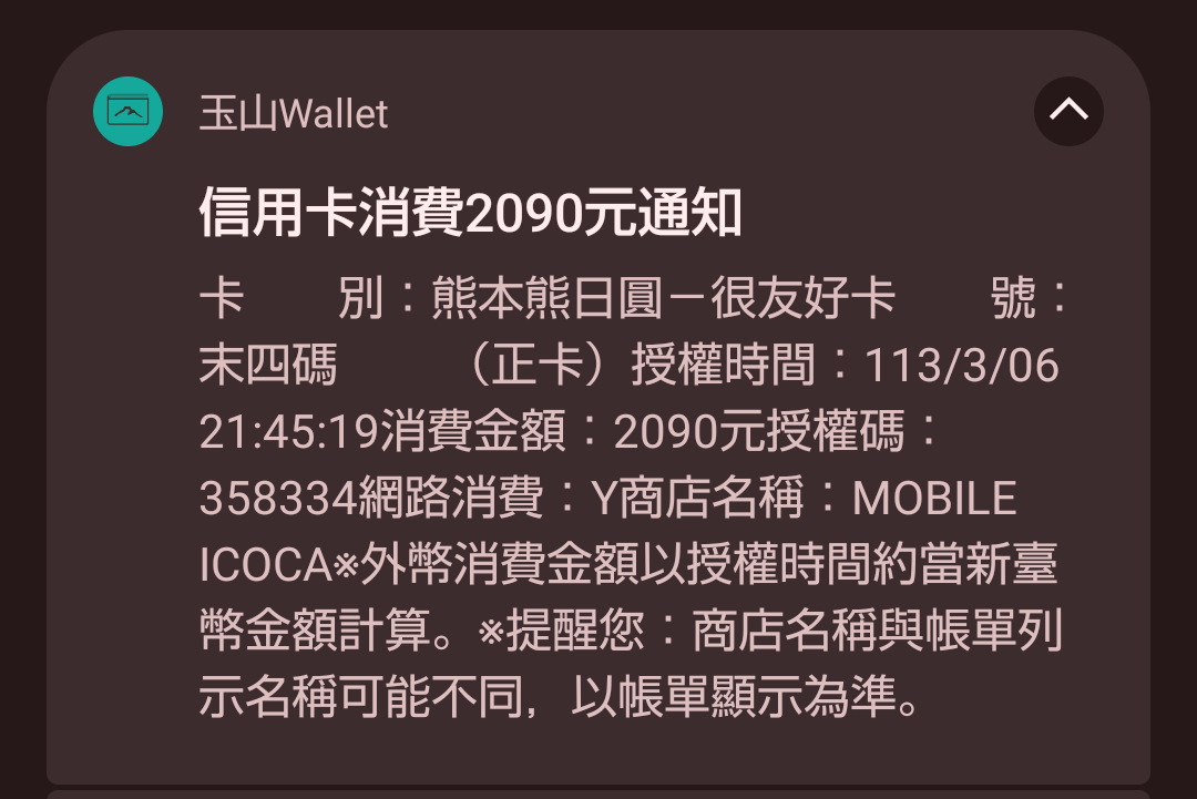 推 wattswatts : 玉山熊本熊卡儲值日本交通卡通路回饋沒有綁定特定 03/06 19:40