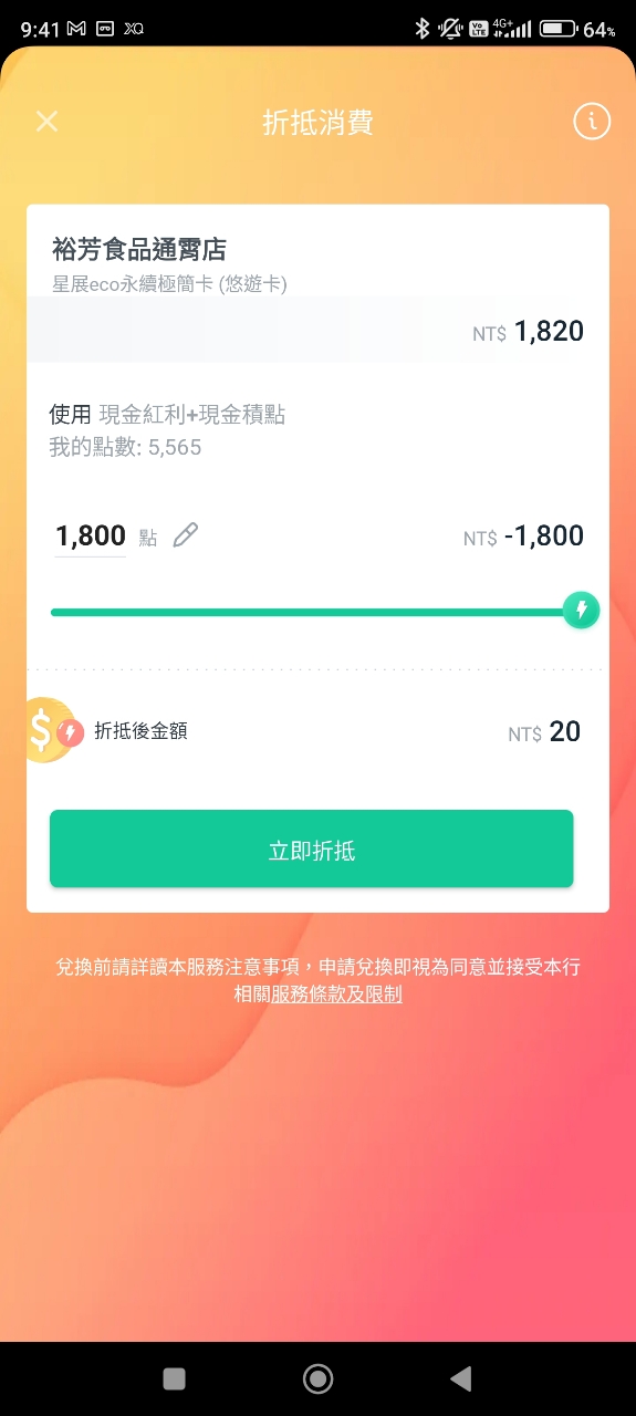 推 stockton19 : 反正現金折扣積點沒期限。大半年再去申請折抵就好 03/20 09:50