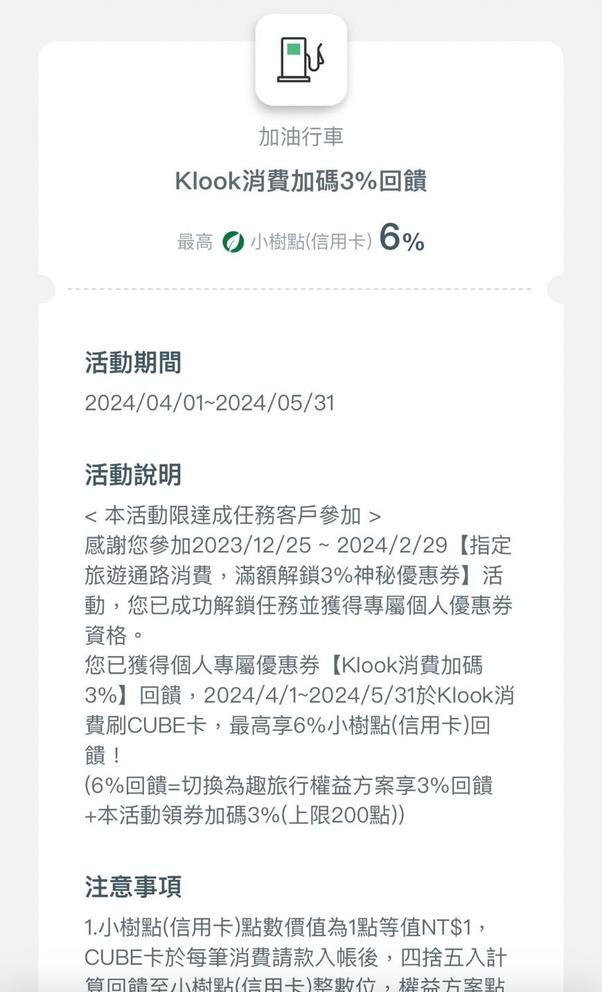推 mclll : 拿到klook的 發現3%加碼能再疊加原本的權益 04/03 14:28