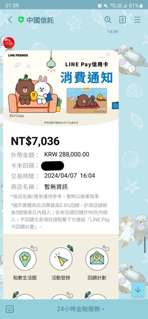 推 Vinccc : 中信通知參考用 實際匯率是JCB的 他會先收1.5% 04/18 11:51