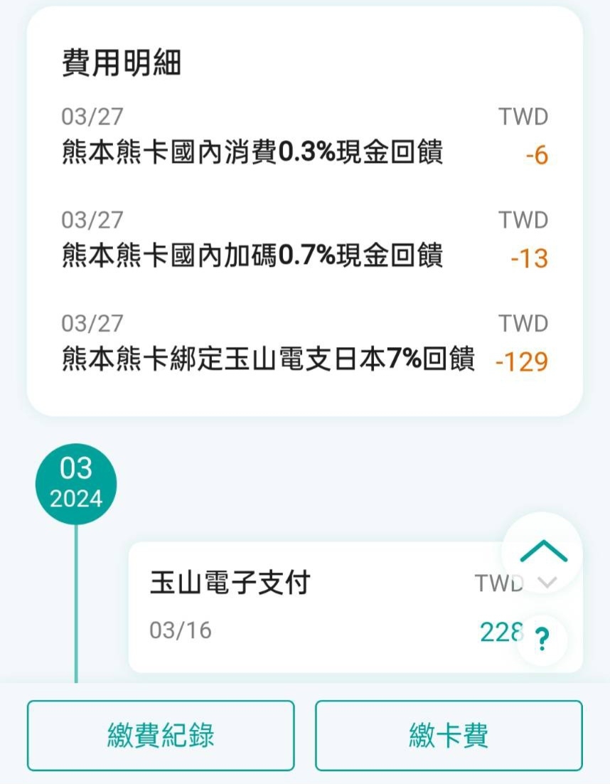 推 KakeiTai : 收到帳單發現多這兩筆回饋(0.3+0.7%),對帳後國內 04/17 13:50