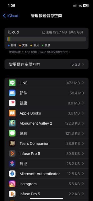 推 neomaster : 目前備份的容量,就是看系統顯示app使用容量 ex. 10/05 09:07