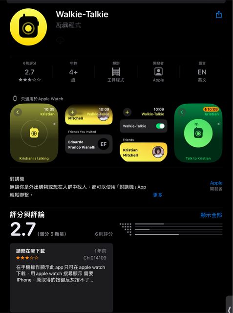 標題[問題] Apple Watch 對講機無法下載