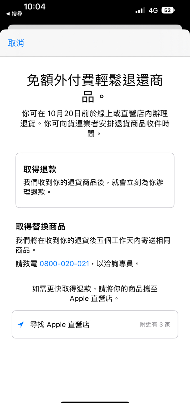 → PeterHu0827 : 自己沒看清楚那也沒辦法 蘋果看要不要破例幫你吧 10/08 16:17